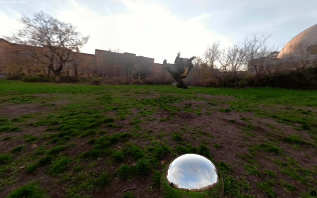 Essentially we are making use of the 3D support of modern browsers, combining site-specific choreographies shot with a 360 degrees camera and randomised visual journeys that make for a different experience every time you visit the website.