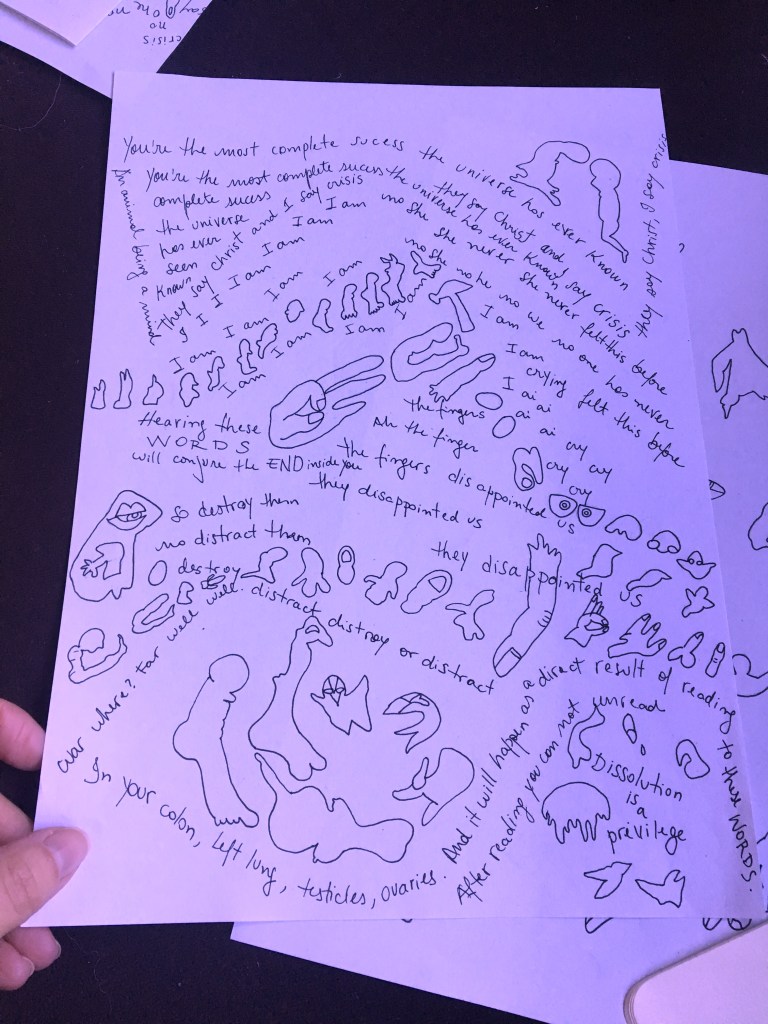 Hello! I’m Michelle Moura, dancer, performer, choreographer. At this residency I’m working on the piece Overtongue. I’m interested in bodily states, but in Overtongue I’m interested in words, in the confusion or inflation of meaning. So I’m creating a slippery language. But not only. I’m indeed working with bodily dissociations, separating voice from it’s facial movement. That means working with rhythm.