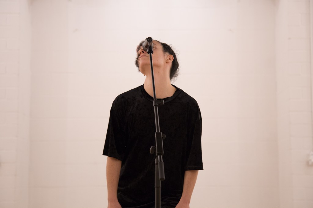 I also invited my long-term collaborator Derin Cankaya to work on visuals and videos in forest. From the beginning of the process, I was intended to spend some time outside because Lake Studios is surrounded by a very specific nature near lake and forest. When I spent some time in this imagery in public spaces, I had a sensation that the eyelashes became enegitical wings that my facial expressions flew away and wounds buried under my skin has wings. Wound with wings or/also wounds with wigs. We had some shooting in forest to observe what kind of expansions in context I would have if I install this body within nature. For the rest of the process, at some point, I chose to deepen outside trials and inside trials. Actually, I am looking forward to sparing some time in near future to develop the trajectories I discovered from outside trials.