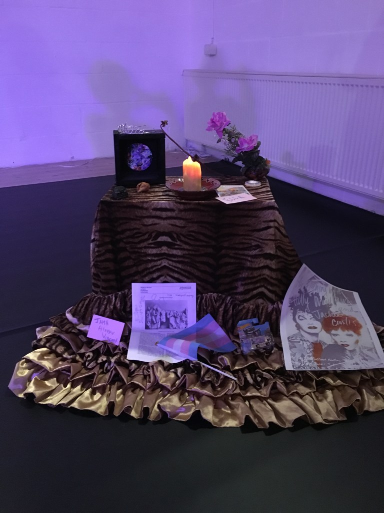 Today was Unfinished Fridays at Lake Studios. Within the framework of UF, I shared a bit about my process throughout the month at the residency. I showed the altar that was built. I mentioned my daily candle lighting process. I talked about Ella. I did my estrogen injection for the audience and then proceeded into a dance invocation. Before I started dancing, I invited the non-cisgender people in the room to accompany me and hold space. It was powerful and beautiful to feel their support and care. I’m grateful for my time that I’ve shared at Lake Studios.